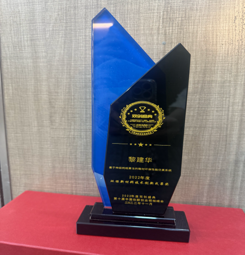 在第十届中国创新创业领袖峰会暨2022新时代创新论坛及年度双创盛典活动中,黎建华凭借"基于神经网络算法的鞋材环保性能仿真系统"荣获"2022年度环保材料技术创新成果奖",标志着环保材料技术在智能化仿真领域取得重要进步。